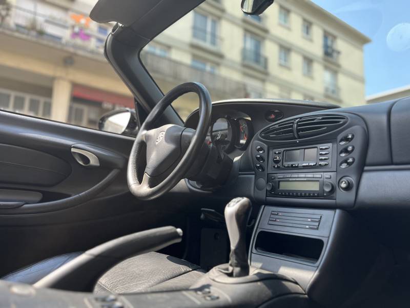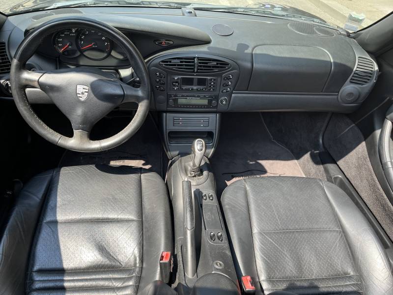 5. Intérieur : L'intérieur de la Porsche Boxster 986 est une fusion de confort et de sportivité. Les matériaux haut de gamme, les sièges baquets bien ajustés et les finitions soignées créent un environnement raffiné et agréable pour le conducteur et le passager. Malgré son statut de roadster, le coffre avant et arrière offre une capacité de stockage suffisante pour des escapades en week-end.