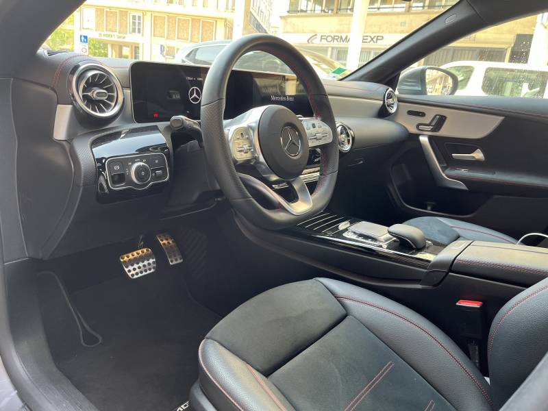 Dès que vous entrez dans la CLA 200, vous êtes accueilli par un intérieur raffiné. Les sièges en cuir ARTICO avec surpiqûres contrastantes, le volant sport multifonction en cuir Nappa et les finitions en aluminium ajoutent une note de sophistication à l'habitacle. Profitez du système d'info divertissement MBUX, équipé d'un écran tactile haute résolution et d'un système de commande vocale intelligent, pour une expérience de conduite connectée.