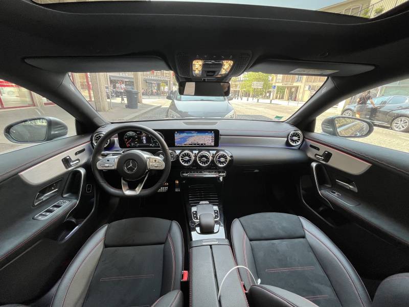 La Mercedes-Benz CLA 200 Pack AMG Line est un véritable chef-d'œuvre de design. Son allure athlétique et ses lignes profilées attirent tous les regards. La calandre diamant, les phares LED et les jantes en alliage AMG de 18 pouces ajoutent une touche de sportivité à son apparence, tandis que le toit panoramique inonde l'habitacle de lumière naturelle, créant une ambiance élégante.